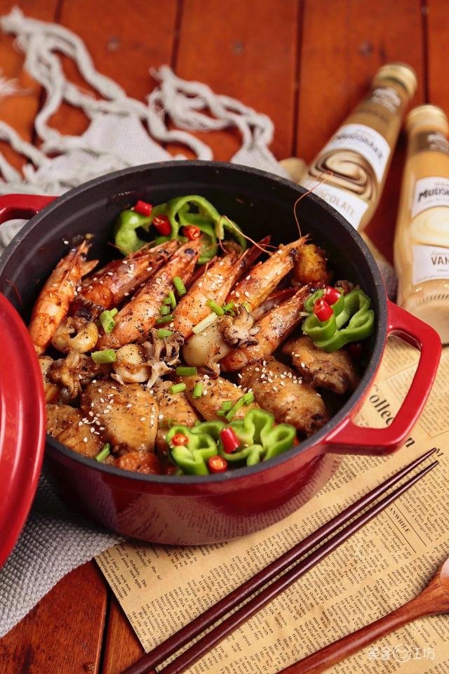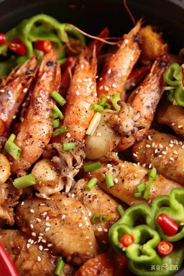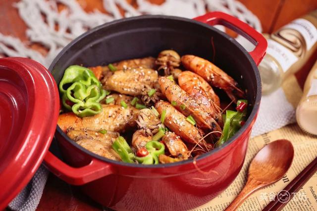 这一次,美食君把鸡翅、大虾和鱿鱼放在肉里,也可以把鸡翅或者换成排骨、猪肉、牛肉等。你也可以选择你喜欢的蔬菜。
