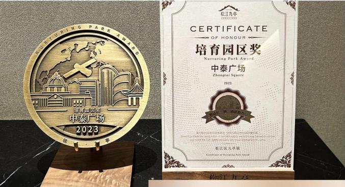 今年3月,上海中泰广场获松江九亭培育园区2023年度奖。未来,中泰广场项目将积极推进科技产业孵化,培育重要产业,成为区域经济增长的引擎。