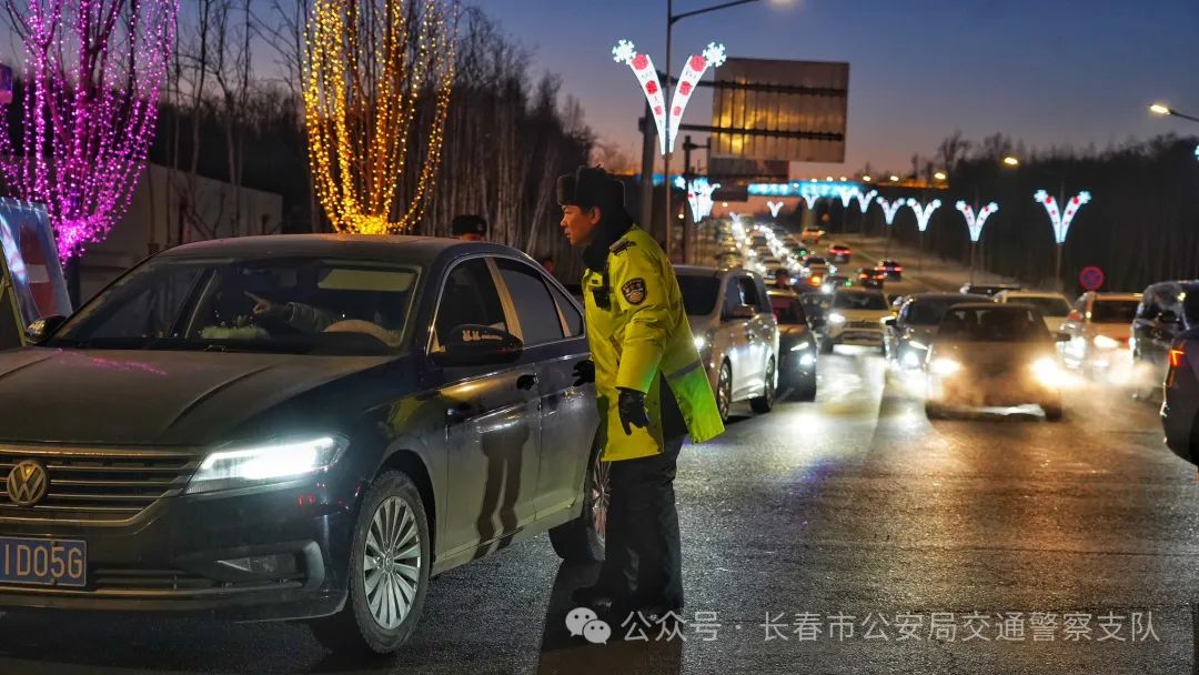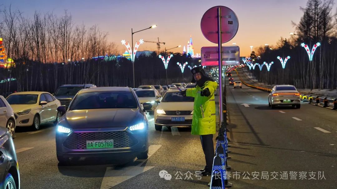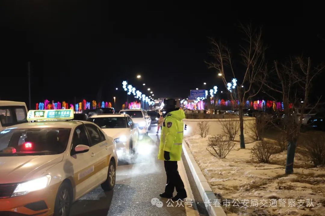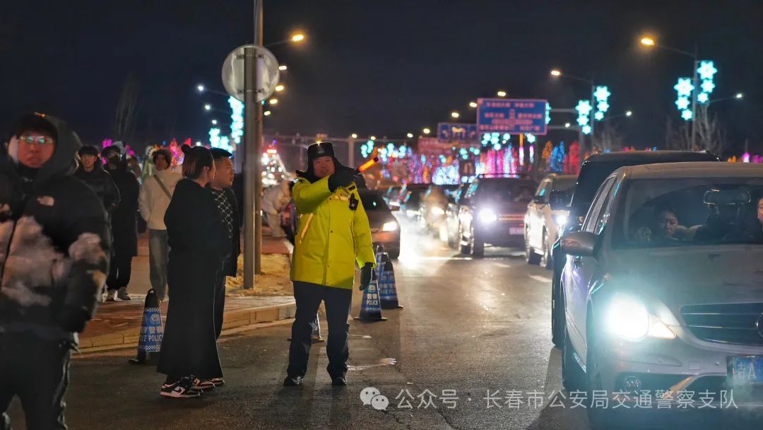 12月16日晚19时,长春冰雪新世界烟花秀开幕。为确保活动顺利进行,长春市公安局交通巡逻支队提前规划部署,启动级别服务,提前值班,分级控制,加强宣传引导,全力确保交通安全畅通。