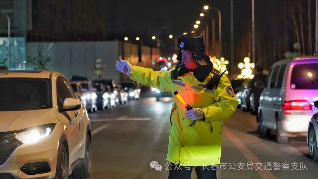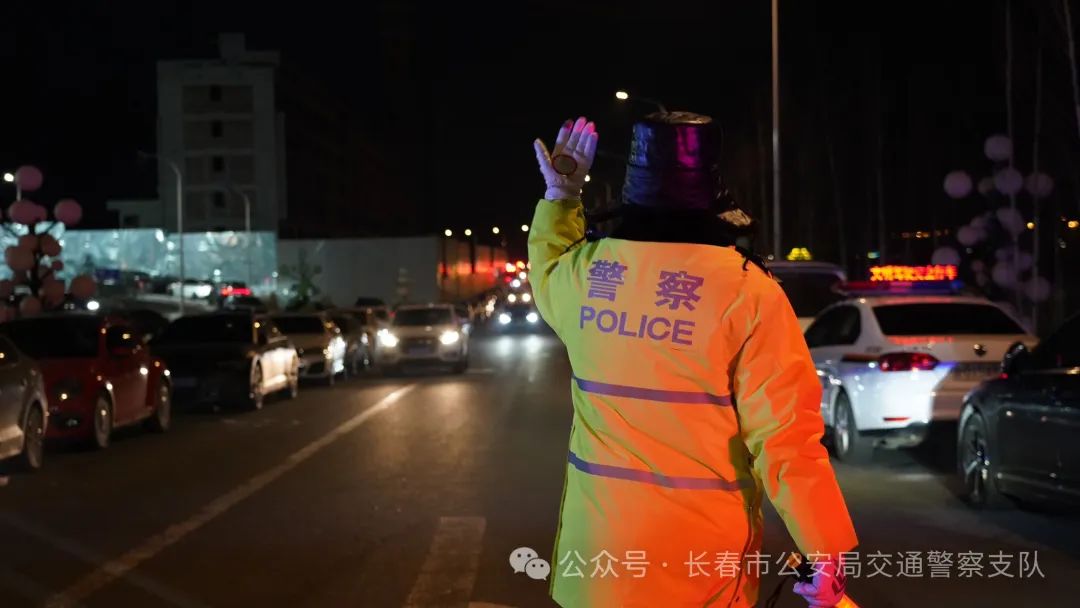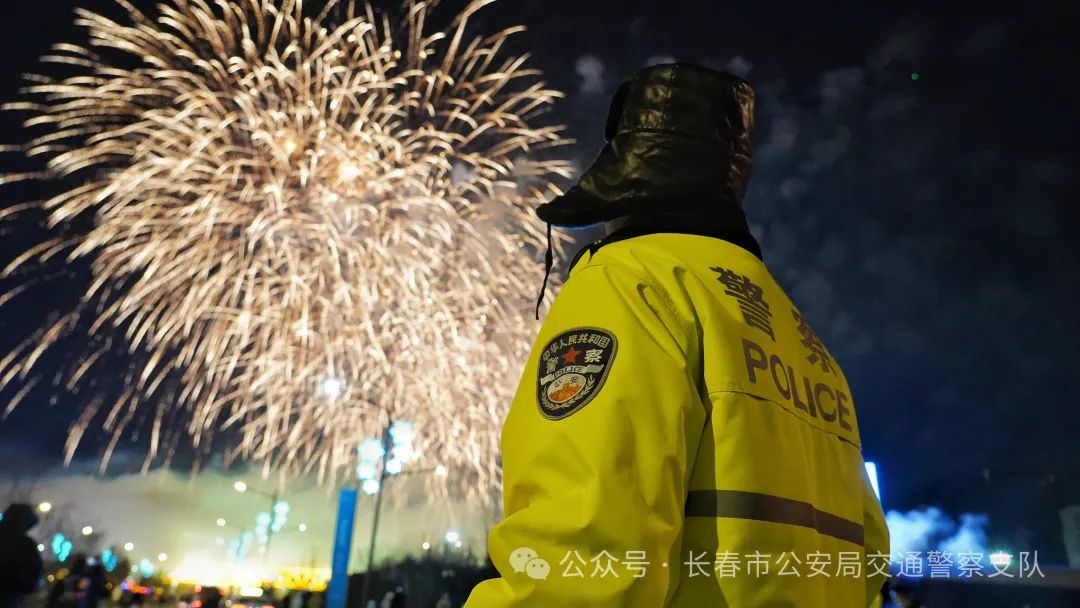 长春交巡警克服了天气寒冷、服务时间长等不利因素,高标准、高质量地完成了烟花秀交通安全任务,斗志昂扬,作风严谨。
