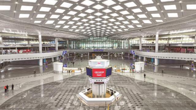 “枢纽屋顶以多环为设计风格,融合成无缝连接的整体屋顶。设计坚持站城融合的理念,将新建的站房、综合服务中心与现有的站房融为一体,集地铁、公交、出租车等多种交通方式于一体,形成“站城融合”的大型综合交通枢纽。”同济大学建筑设计研究院轨道交通建筑学院总建筑师薛慧明说。