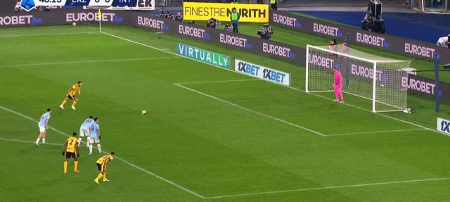 拉齐奥在比赛开始后进攻猛烈, 10 索默在几分钟内解决了蓝鹰的问题。 2 次射门,第 22 几分钟后,在罗韦拉右路传中,诺斯林的抽射高于横梁;在抵挡住对手的三板斧和稳定的防御后,国际米兰逐渐找到了进攻的机会,抓住了所有的机会。