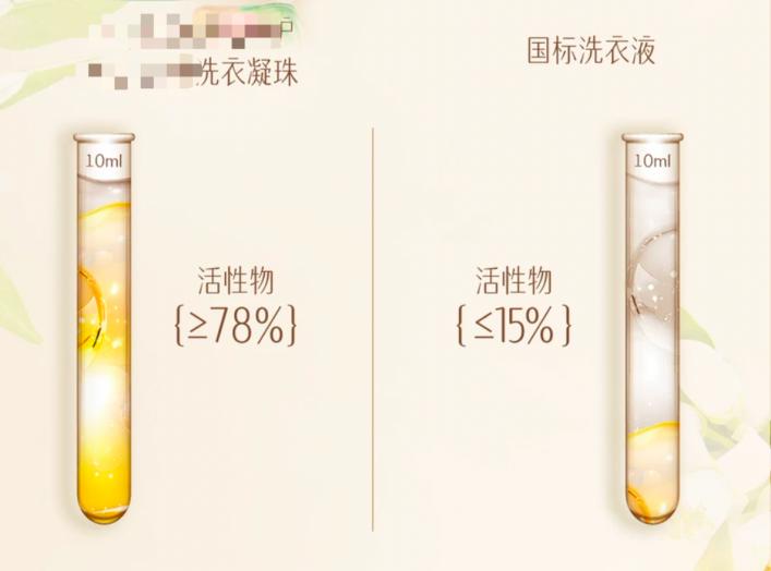 某品牌洗衣珠宣传页面,活性物质含量超过 78% 从购物平台截取照片