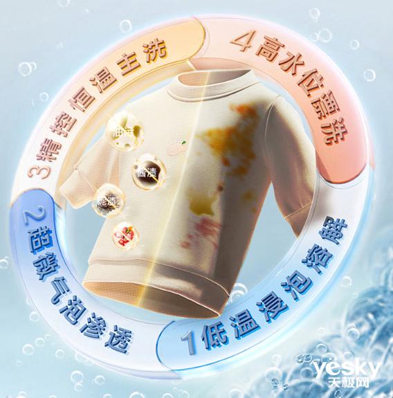 超净泡精洗技术也是一大亮点。它利用非常微气泡深入纤维,彻底去除污渍,节省时间和电力。 ; 同时配备智能投放,精确控制洗衣液投放量,然后通过高压喷雾大规模覆盖脏衣服,实现深度清洁,让衣服由内而外洁白如新。