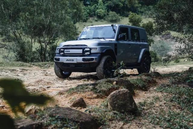 第一,设计外观 iCAR V23 采用了非常方正复古的车身造型,车前集成了“一拱、二圆、三横、四纵”的经典设计风格,加上向外扩张的轮眉,看起来野性十足。