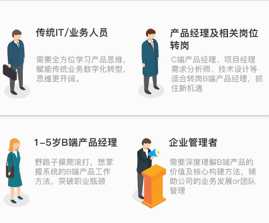 看见这儿你是不是已经无法形容了?假设你是传统的 IT/ 业务人员、产品经理及相关岗位想转岗,1-5 岁 B 终端产品经理,企业经理想要提升 B 终端产品经理的核心技能。但不知如何开始,没有方法和想法?