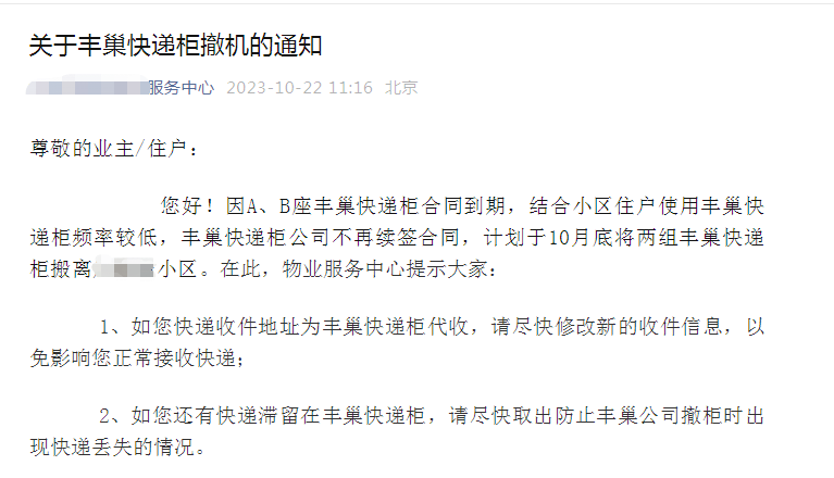 据媒体报道,近一年来,北京、杭州、深圳、佛山、海口等多个城市的许多社区都发布了智能橱柜撤销通知,包括丰巢、快递等知名品牌。