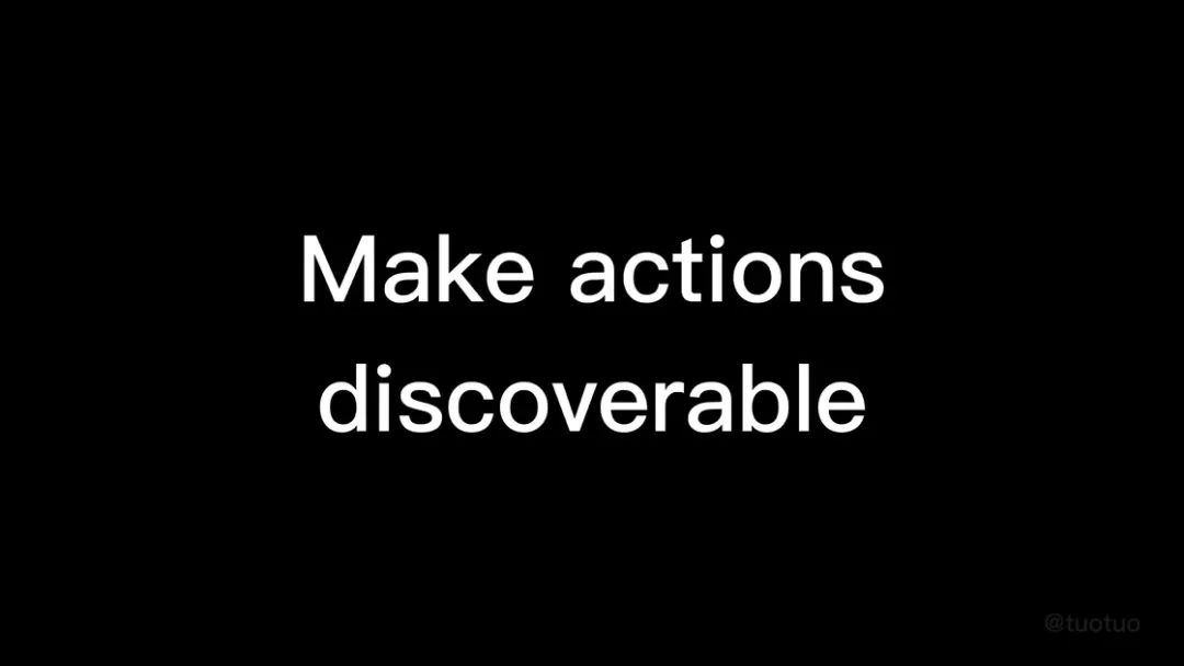 理想状态是:获得的信息一目了然,尽量避免交互和操作。互动应该能够被发现和预测。