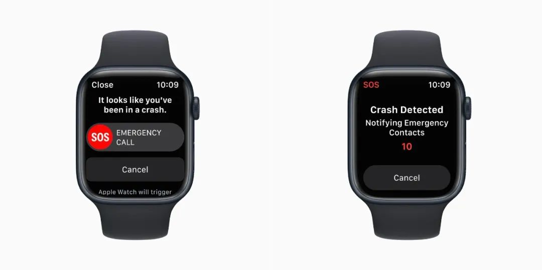 当 Apple Watch 如果客户在发现严重车祸时, 10 几秒钟倒计时后仍然没有反应,设备会向用户报告并拨打急救电话。紧急救援人员将收到客户的设备位置,并与用户的紧急联系人分享。Apple Watch 和 iPhone 世界上的碰撞检测功能可以无缝合作,为用户提供有效的帮助。当发现严重车祸时,紧急服务呼叫界面将出现 Apple Watch 其实,因为它可能是目前最方便的交互设备;而且如果手机也在连接范围内,就会通过 iPhone 拨打电话。