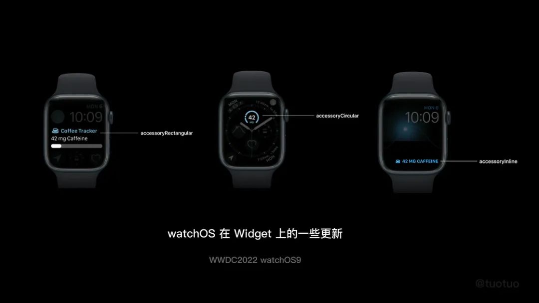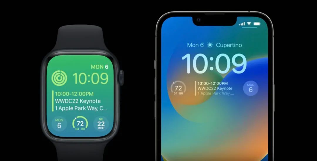 iOS 16 可在手机锁屏上设置一些复杂的屏幕。 widget,同样,在 watchOS 9 其中,也加入了一些 widget 的设计。