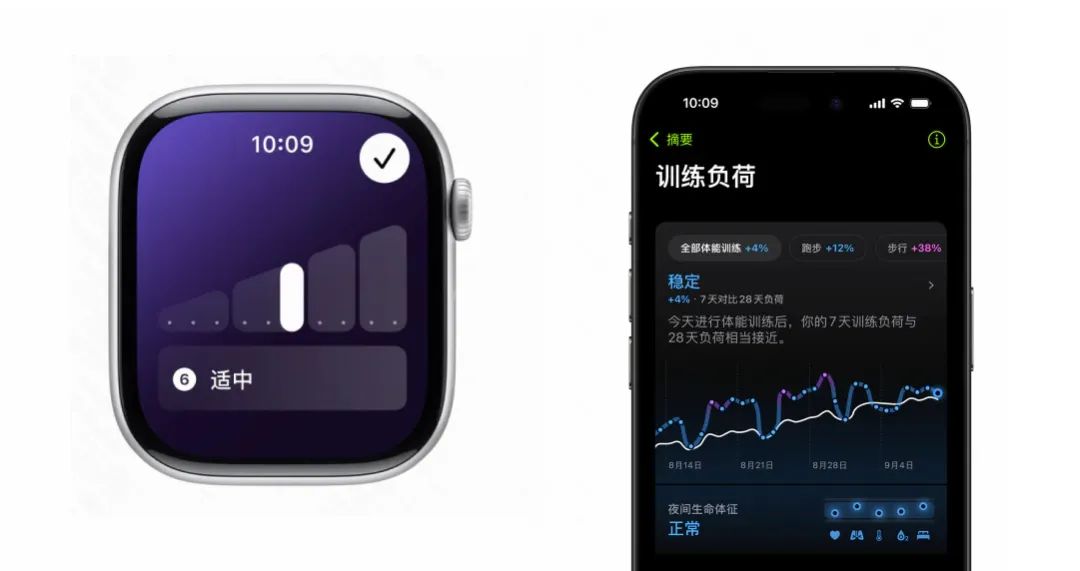 同时,运动负荷功能也在向系统化迈进。「训练负荷」通过综合心率、海拔、运动时间、年龄体重等数据,计算用户在训练过程中的运动量和训练负荷,并将其划分为「轻松」「适中」「艰难」和「竭尽所能」 四种类型的标签,帮助用户合理安排健身计划,也可以在运动后手动调整。当你在手机上看的时候,你也会更直观地了解自己的身体训练状态。