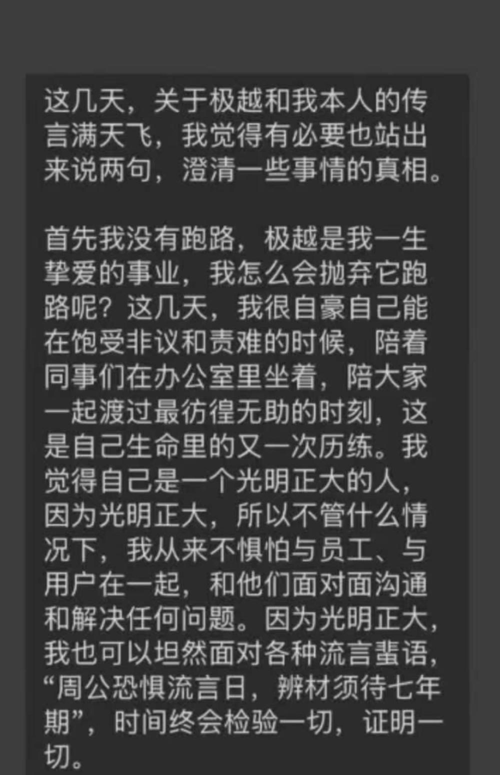 就在今天,极越CEO夏一平在个人社交媒体上发了一条信息,上面写着:“这几天,关于极越和我自己的谣言满天飞,我觉得有必要站出来说几句话,澄清一些事实。”