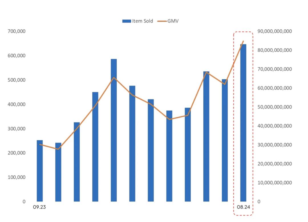 根据Metric之前发布的一份报告,越南Shopeeeee从2023年1月到2024年8月,、Lazada和Tiki 中国化妆品总收入达到10,050亿越南盾的三个电商平台。其中,2023年1月,市场收入略高于300亿越南盾,到2024年1月,销售额将达到近千亿。