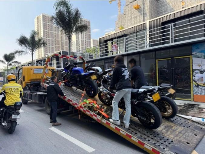 11月21日,广州交警会同有关职能部门,组织30余名警力前往东莞市、佛山市、广州市白云、荔湾等区进行统一抓捕,成功抓获4名目标对象,扣押4辆涉案车辆,查封1家涉及非法改装的店铺和18辆非法改装的摩托车。