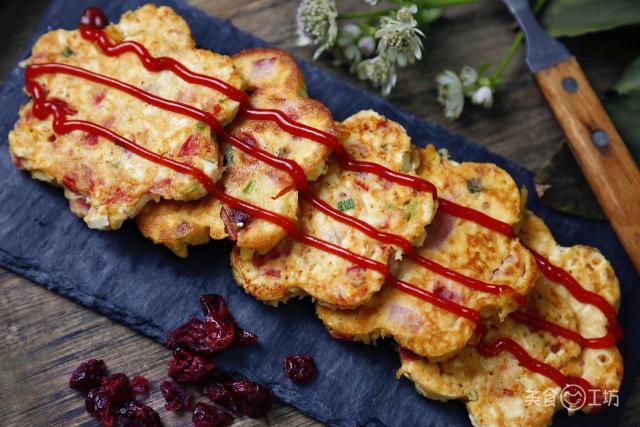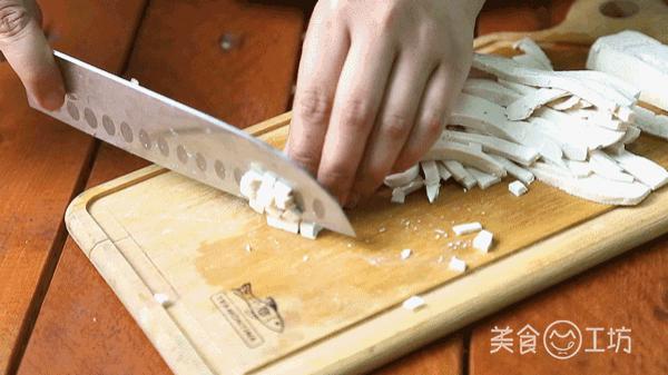 2. 有关食材切丁 —— 尽量把食材切成小块,但不能切碎,大块的食材使饼不成形。