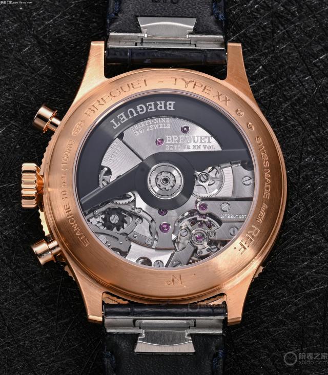 宝玑玫瑰金 TYPE XX,使用的 728 计时机芯自动上弦。