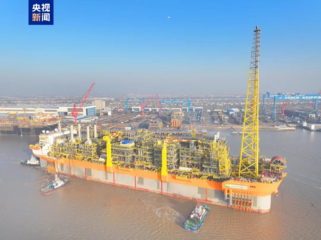 4月12日,新型“海上浮动储油船”从江苏省启东省长江港口交付离港,是世界上吨数最大、储油量最大的新型海上浮动储油设备,又称“海上移动炼油厂”。