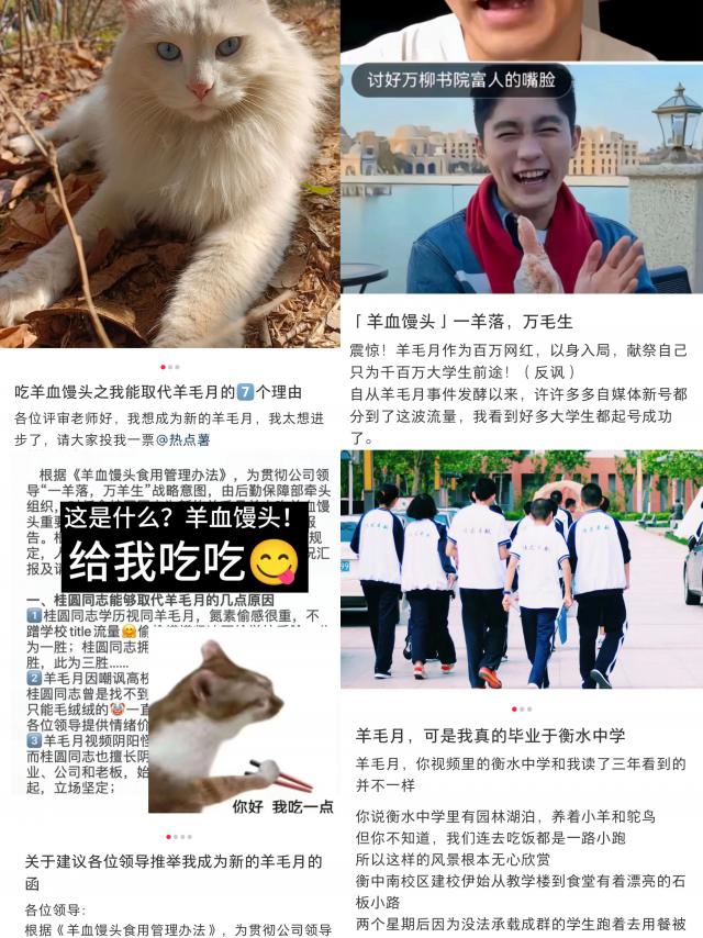 事件发酵后,“羊血馒头”在网络上迅速流行起来,即大量网友将指责羊毛月视频作为引流甚至起号的话题。