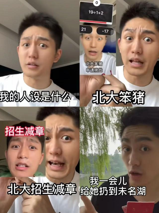 羊毛月立着“北大学霸”的人设,通过对未名湖扔学生证、自称“北大笨猪”、“北大笑草”等方式,为了拉近与普通人的距离,制造反差感。