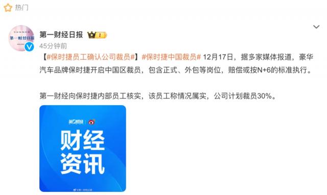 12 月 17 日本,多家媒体和社交平台博主报道了保时捷中国区裁员的消息。据悉,此次裁员范围广,涉及正式员工和外包员工。其中,正式员工被裁员 外包员工裁员10% 30%。