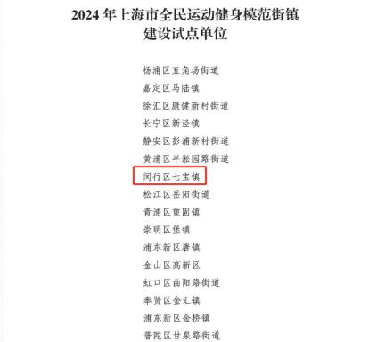 最近有好消息传来——七宝镇被评为2024年上海市全民运动健身模范街镇建设试点区,这也是闵行今年唯一获得这一荣誉的街镇。