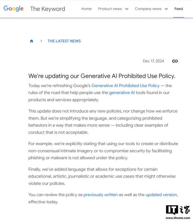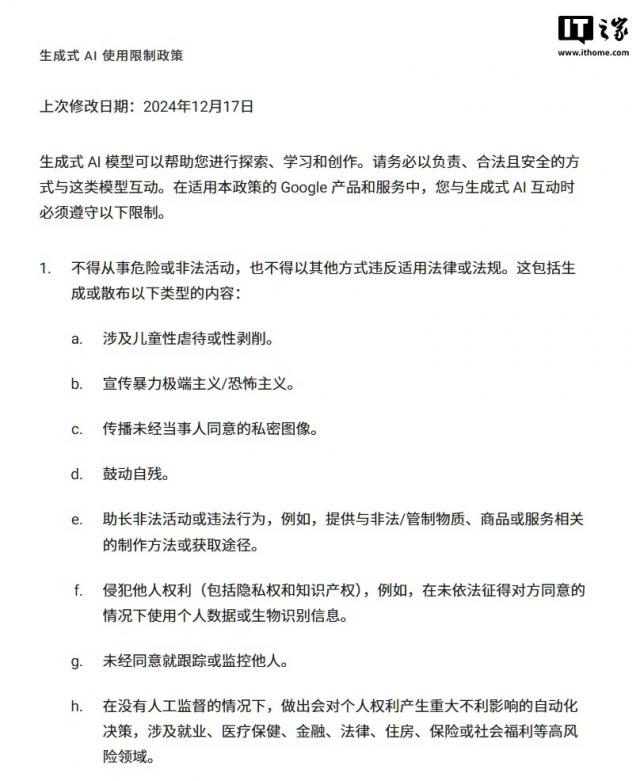 IT 世家 12 月 18 谷歌通过更新使用政策明确表示,只要有人工监管,客户就可以在“高风险”领域进行监管。(如医疗健康)利用其生成的人工智能工具进行“自动决策”。