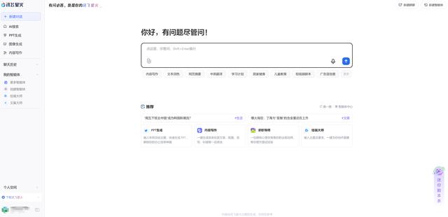 大多数众所周知的AI模型都倾向于C端使用场景,而具有清华大学学术“血脉”的智谱清言则是B端与C端并进的AI模型。目前,智谱清言增加了AI搜索、AI绘图、PPT生成、视频生成、长文档解读、数据分析、视频生成等功能。主页推荐的功能主要是办公场景。