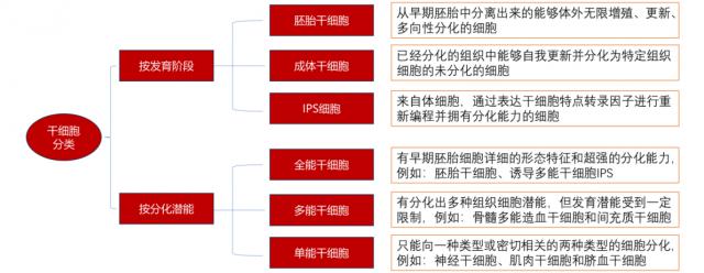 当前,干细胞可以根据发育阶段的来源分为胚胎干细胞、成体干细胞和成体干细胞。 iPS 三种类型的干细胞。与此同时,干细胞可分为三类:全能干细胞、多能干细胞和单能干细胞。