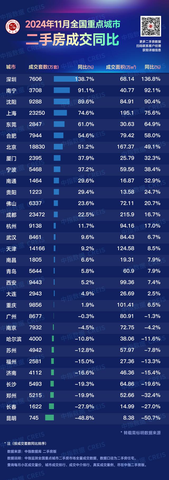 十一月二手房交易排名易主,深圳交易同比增长138%