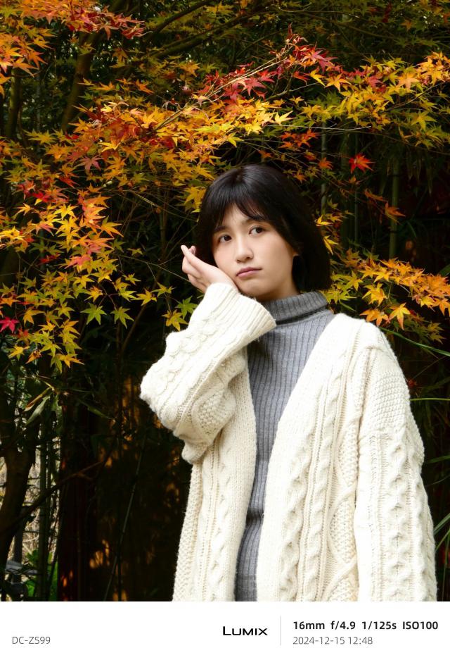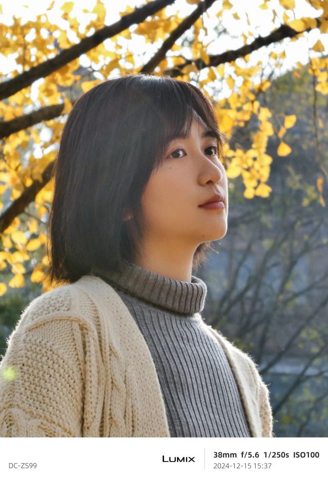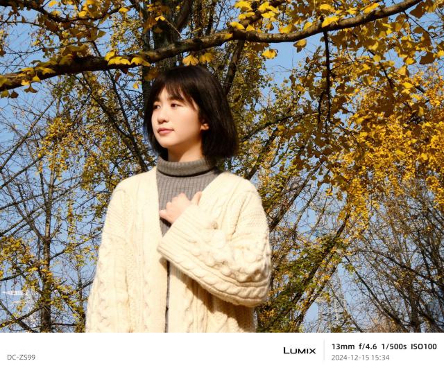 我们来看看拍摄人像的表现。机器中的“生动”滤镜相当适合户外人像拍摄。它的对比度略低,整个画面看起来更柔和。