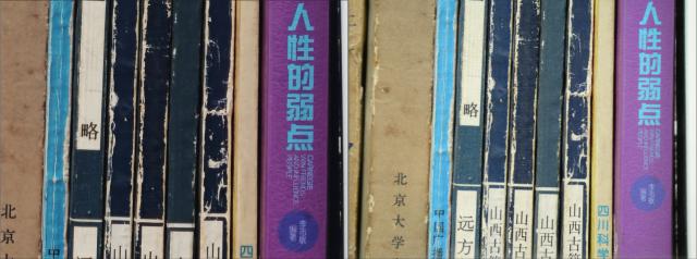 让我们放大书脊。在这里,为了保证“看起来更清晰”,手机对画面进行了更锐化的处理,纹理部分也被锐化了。 涂抹得很严重,基本上已经看不到细节了;但是相机在这里,仍然可以看到书脊上的线条细节。