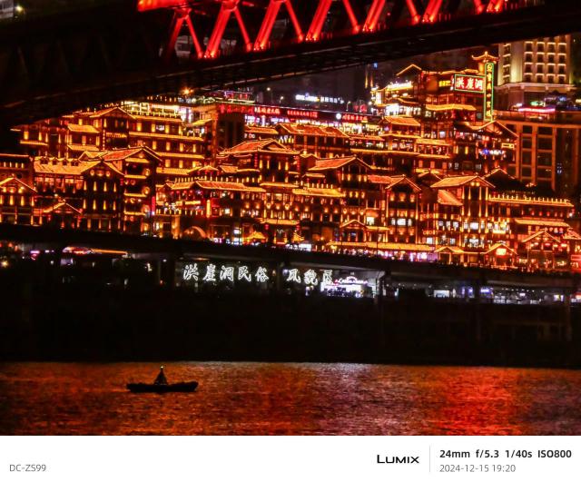 ZS-99 尽管在 ISO800 下一次也有噪音,但是和手机相比,细节还是太多了,尤其是旁边的建筑没有抹去很多细节,楼层和灯光都可以区分。