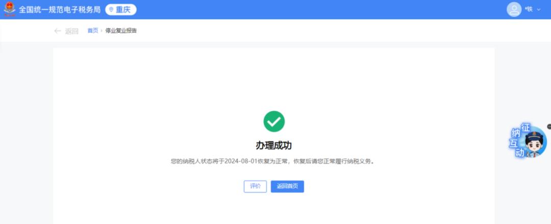 选择【关闭期限起始】框中的起始日期,点击【确定】,即可跳转到成功界面。