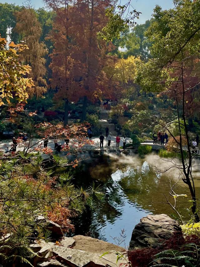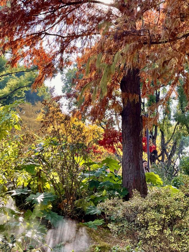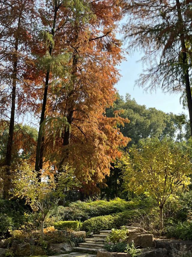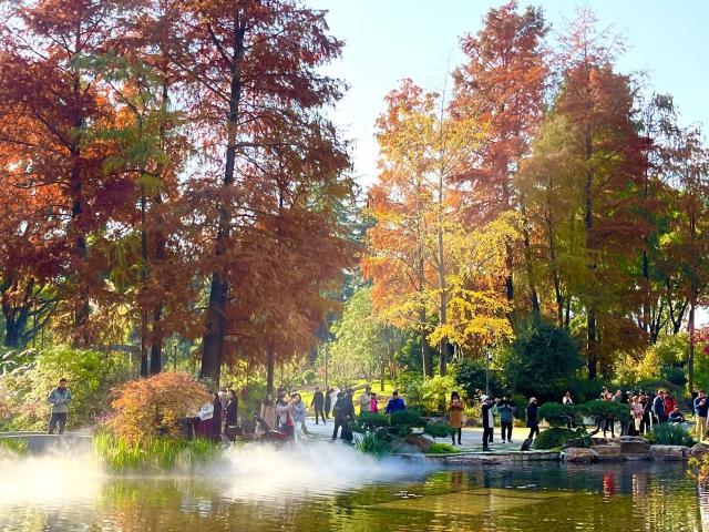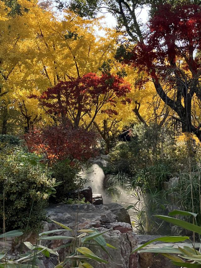 水杉色彩斑斓,假山叠瀑,