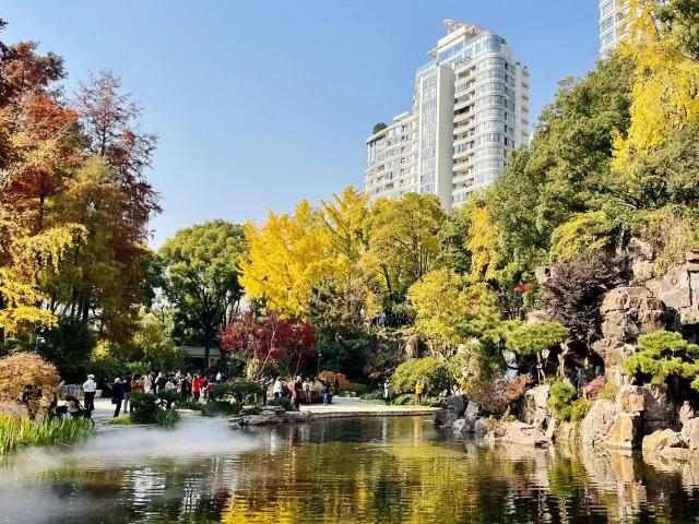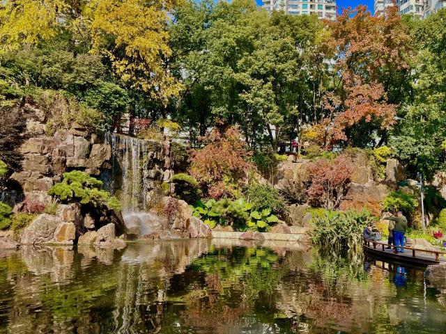 锦山如画,绣湖岚烟燃烧。假山叠瀑,是辅德里公园最受欢迎的打卡地。
