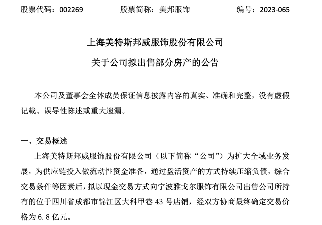 当美特斯邦威陷入财务困境时,雅戈尔也紧急出手,购买了位于沈阳、成都、武汉、贵阳等地的美邦优质店铺。
