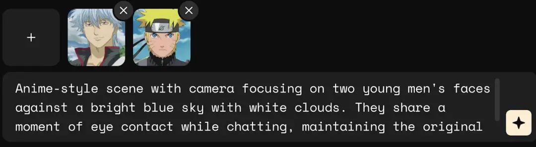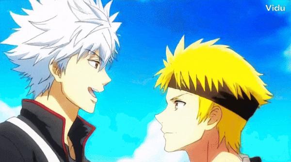 坂田银时与漩涡鸣人同框,Vidu 实际上可以根据正脸生成侧脸,但是画风与原图不同。