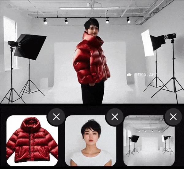 Pika 最近更新的 2.0 这个模型,提出了一个非常有趣的解决方案——我们上传多张图片,Pika 可以准确地参考图片中的元素,生成视频。