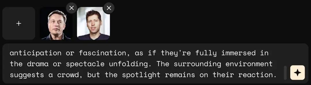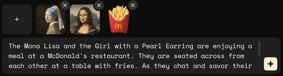 使用非常简单:1. 点击「 」上传照片,上限 6 张;2.在输入框中,写下简单的提示。