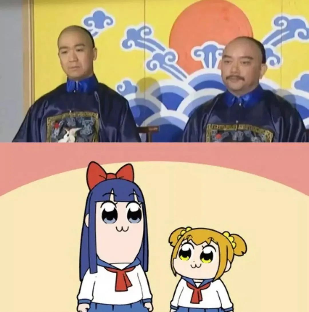 两者的日式大眼睛,W型猫嘴,女高中生穿着,给人一种刻薄而神奇的视觉印象。其脱线人的设计正好符合当代年轻人的胃口,成为新一代表情图的大家庭和网络嘴的替代品。“一高一矮”的形象也将被二创客户代入到与郭德纲于谦和纪晓岚的双人组合中。