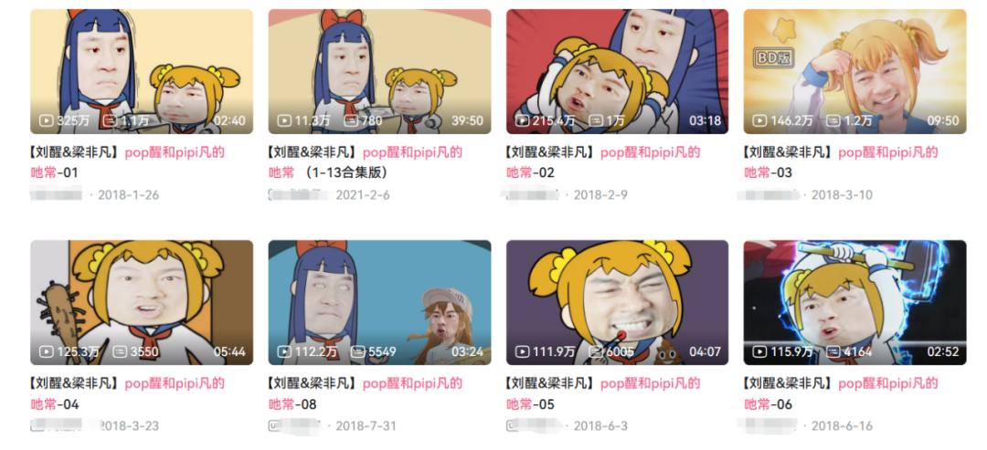 《POP子与PIPI美》第一季在哔哩哔哩上线的时候,整部表演手法花样百出的电影就是UP主眼中取之不尽的素材库。鬼畜区UP的奇思妙想直接效果翻倍,《华农兄弟》《刘醒与梁非凡》等鬼畜明星的日常时期有上百万的播放量。