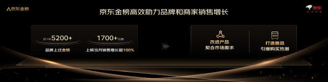 与此同时,JD.COM金榜也提交了一份引人注目的成绩单:今年,近9亿人通过金榜下单,近80%的消费者不到10秒就能找到自己喜欢的产品;今年有5200多个品牌上榜,其中1700多个品牌上榜,销量同比增长100%以上。