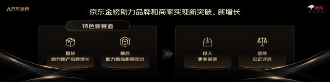 京东金榜也一直在倾听消费者和品牌商家的反馈,不断优化升级。伴随着国潮和首发经济的兴起,越来越多的消费者开始倾向于选择具有地方特色和创新元素的商品。随着这一趋势,JD.COM金榜今年新推出了两条特色跑道:国产产品和新产品,为消费者带来了更丰富的消费体验和发现时尚品牌的机会,为国内品牌和新产品提供了更广阔的展示平台,帮助他们在竞争激烈的市场中脱颖而出。