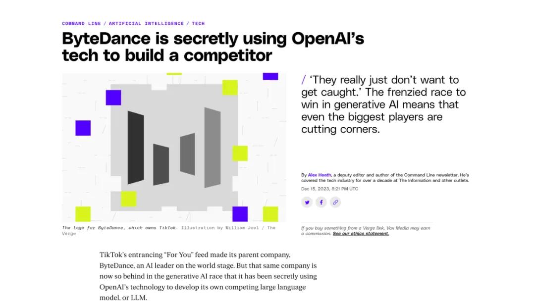 而且有意思的是,这种饱和发展的结果,显然也让大洋彼岸的openAI大吃一惊。The 2023年12月,verge报道,open 由于openopen关闭了字节跳动旗下部分产品的GPT帐户, AI怀疑后者正在使用GPT来训练自己的大模型。