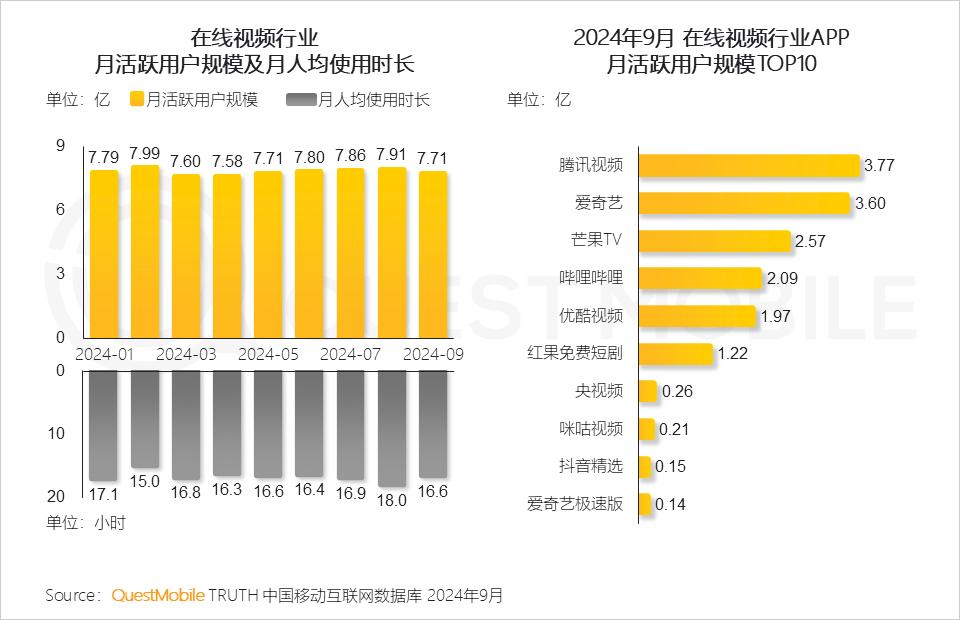 到9月份,优酷APP的月活用户数量达到1.97亿,排名第五,不敌芒果TV的2.57亿和哔哩哔哩的2.1亿,而腾讯视频的3.77亿和爱奇艺的3.6亿更是难以承受。