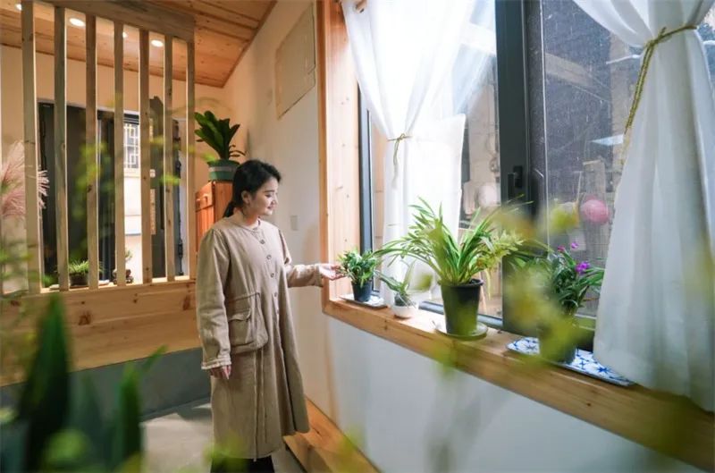 “筑小甜”是这里最早开业的民宿,也是这里经营时间最长的餐厅。房子前面的小溪潺潺流淌,院子里摆满了花草。“当你走过这里时,你总是要进来参观院子,坐下来。”客栈老板娘邓光琴说,她问候每一位游客走进这个院子,休息一下,喝杯茶。