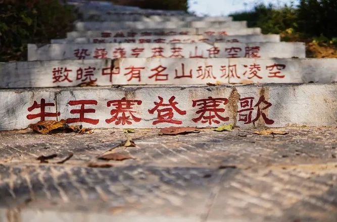 现在,牛王寨仍然有迹可寻。曾经有三道城墙从山下到山上。第一座城墙在山脚下,上山入口处,现在仍然存放着第一座城墙古迹,用巨石、块石砌成,非常坚固。墙壁下面有一个水池,名龙井潭。二道城墙下有放马场,马棚墙角的遗址若隐若现。峰顶西南有一座名为“旗杆尖”的山峰。相传是寨主插旗的标志,倒旗是传递军情、指挥作战的标志。类似于古代的“篝火台”,几里之遥就能看到。旗杆尖处建有“议事厅”,周围山顶有岗哨,山腰有壕沟。寨子顶部,拴马石、古陶瓷、石凳、石柱等遗址,隐约可见。