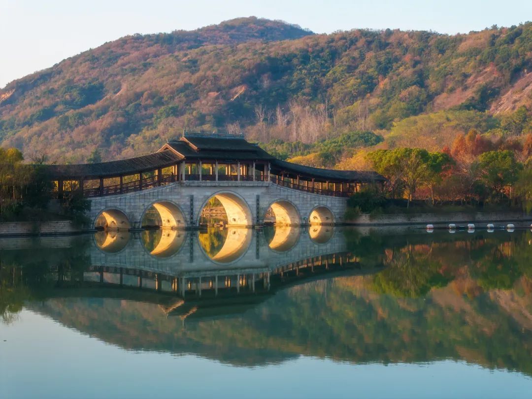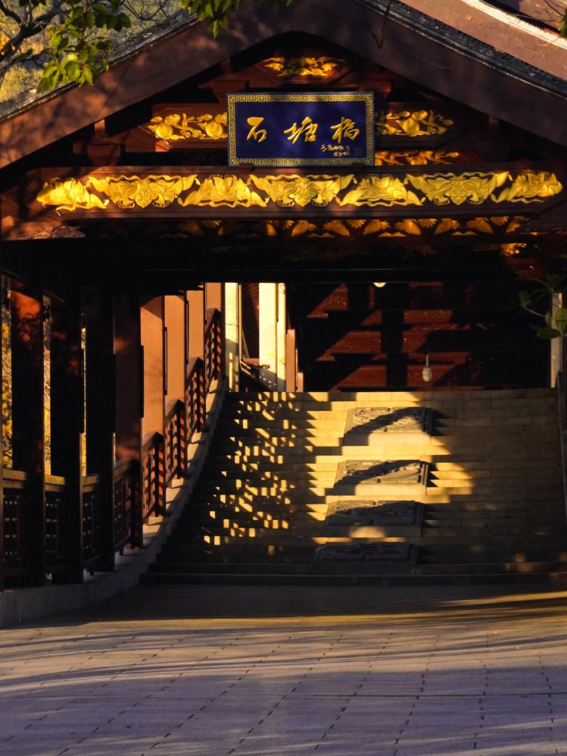 霞光落水,金光穿桥洞。