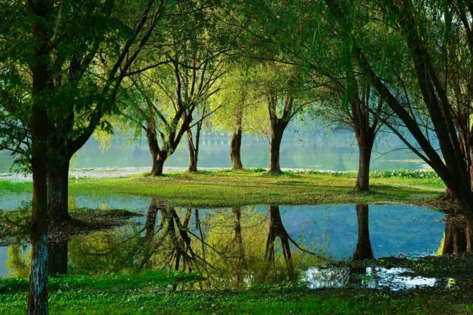 清澈的水面就像一面明镜
