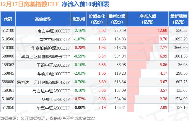 十二月十七日,宽基指数ETF净流入69.46亿元